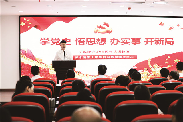 重慶彭水網(wǎng)(融媒體記者 冉江陵 周術(shù)軍 /文 趙 勇/圖) 7月6日,縣融媒體中心舉行“學(xué)黨史、悟思想、辦實(shí)事、開新局”演講比賽,回顧黨的光輝歷程,謳歌黨的豐功偉績(jī),抒發(fā)黨員干部對(duì)黨的崇敬之情。