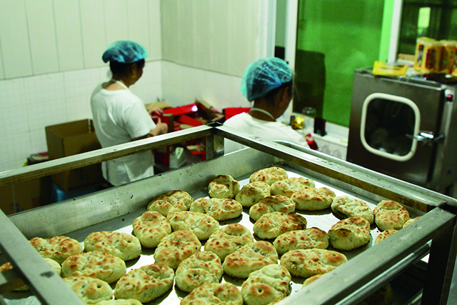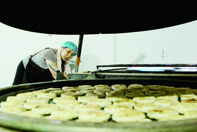 9月14日,在郁山鎮(zhèn)戴記食品工廠里,工人們正在搟酥、包餡、上芝、烘烤,準(zhǔn)備制作傳統(tǒng)的手工搟酥餅。